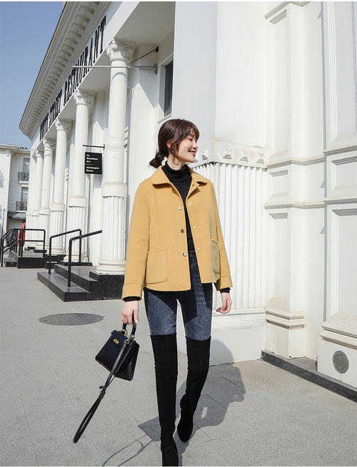 杏色水貂绒短外套搭配黑色羊绒衫和深蓝色牛仔裤,短外套颜色纯净,暖意融融。整套搭配轻盈柔美,挡风保暖,有甜美的容颜衬托,更加明媚动人,赏心悦目。 雾霾蓝... 好...